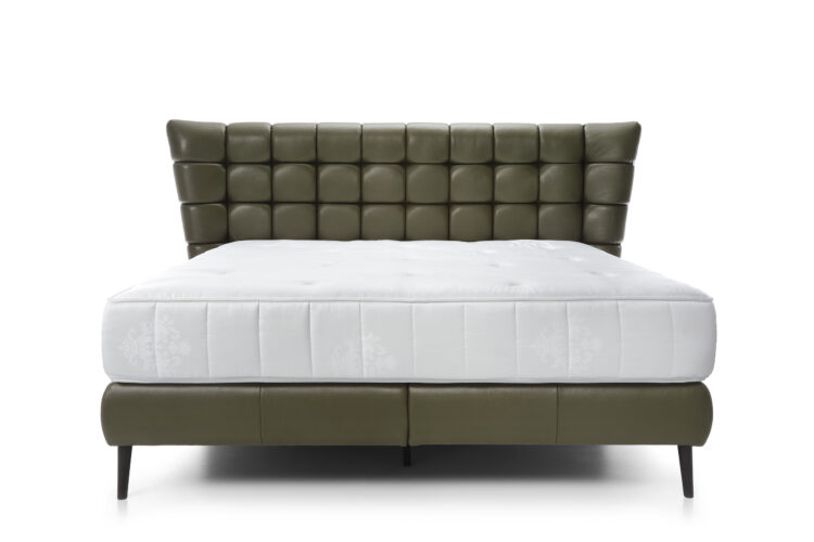 Dieses Modell ist ein echtes Schmuckstück unter den Betten. Es besticht durch sein originelles, gestepptes Kopfteil mit zahlreichen Stichen auf dem Schaumstoff. Hohe, schlanke Beine verleihen der Struktur Leichtigkeit. Eine außergewöhnlich große Auswahl an Bezugsstoffen und Naturledern ermöglicht es Ihnen, das Bett an den Charakter Ihres Schlafzimmers anzupassen.