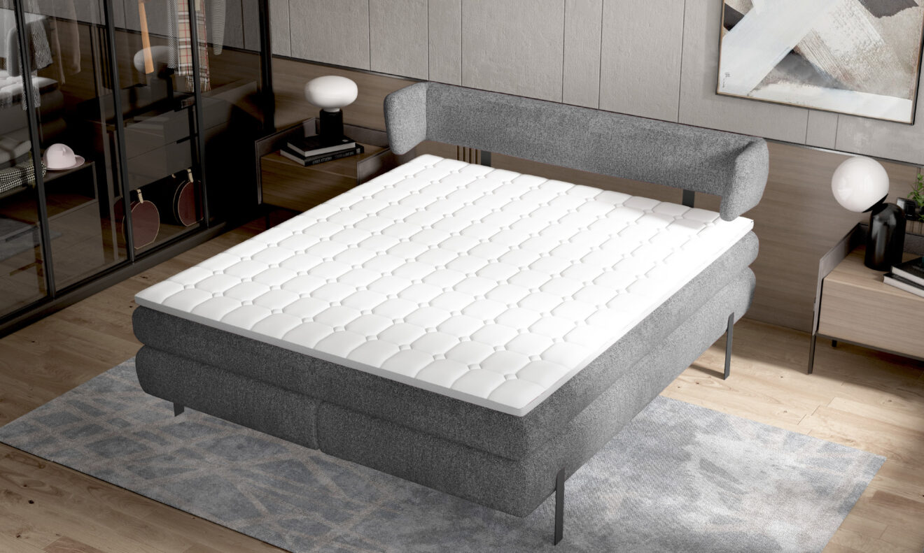 NOBILE – ein modernes Bett mit einer außergewöhnlichen, originellen Form. Die an den Metallstützen montierte Kopfstüt- ze sorgt für die Leichtigkeit und Eleganz dieses Modells. Die geringfügige Neigung der Rückenlehne garantiert eine bequeme Abstützung in einer halbliegenden Position. Das Design dieses Models trägt dazu bei, dass das ganze Schlafzimmer einen unge- wöhnlichen Charakter bekommt und dabei seinen hervorragen- den Komfort behält, den die eingebauten Matratzen bieten.
