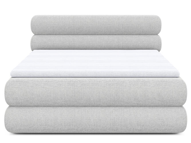 NOLIO ist ein komfortables Bett mit zwei praktischen Bettkästen und einer bequemen Matratze. Das Kopfteil und das Innere sind mit einem charakteristischen Muster aus weich gerundeten Linien gestaltet. Die abgerundeten Formen verleihen dem Schlafzimmer eine moderne und gemütliche Ausstrahlung.
