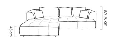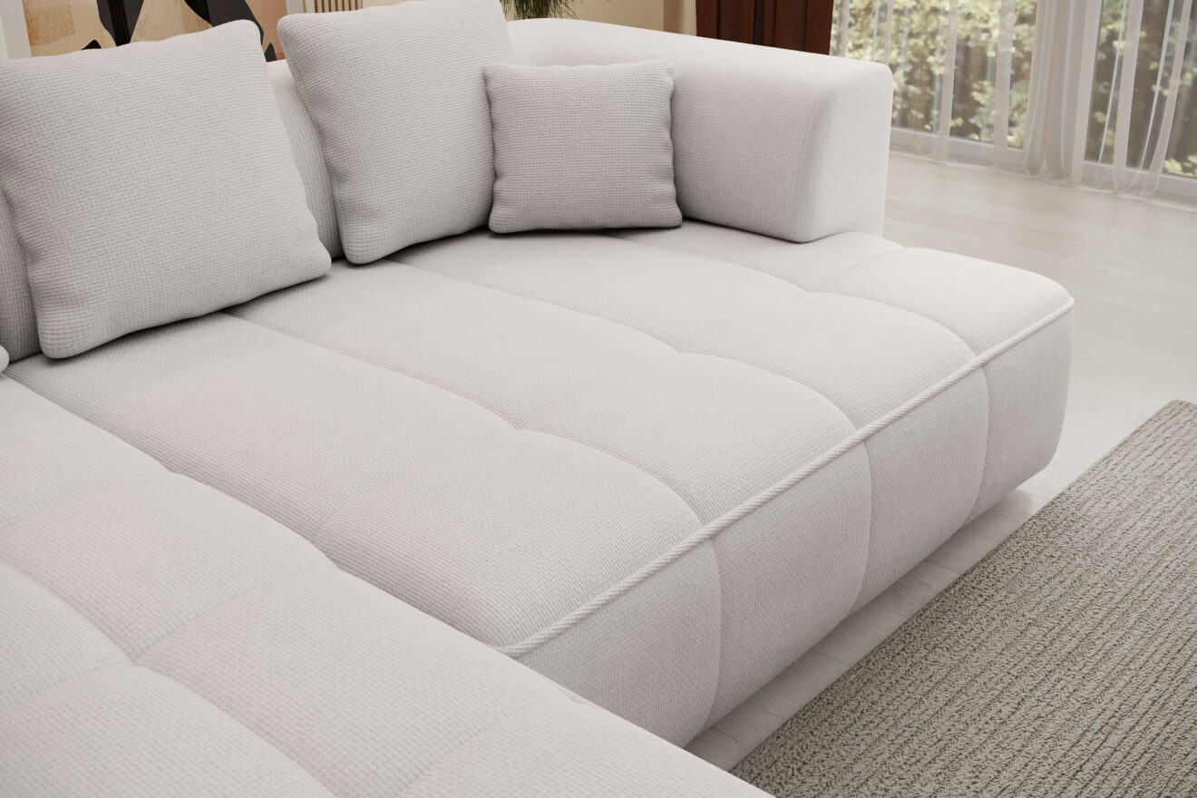 Das Ecksofa Albio S vereint elegantes Design mit funktionalen Lösungen, die den Komfort im Alltag erhöhen. Ausgestattet mit einem elektrisch ausziehbaren Sitz, lässt es sich individuell an den gewünschten Sitzkomfort anpassen. Die breite Ottomane bietet Platz für zwei Personen, um sich bequem zu entspannen, und die dekorativen Kissen sorgen für weiche Unterstützung während der Erholung.