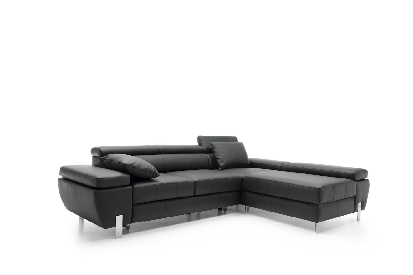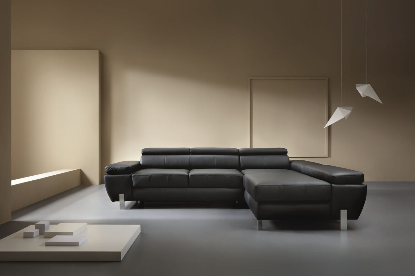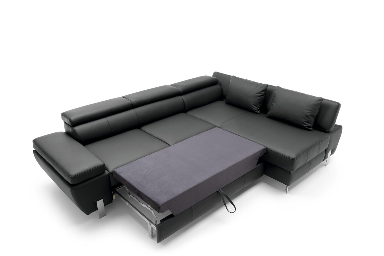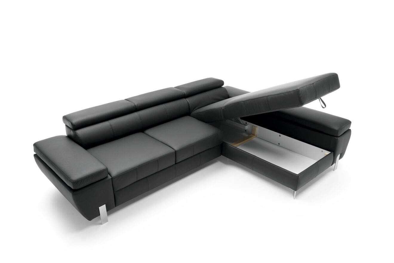 Molina ist für alle, die modernes Design, Komfort und Funktionalität zu schätzen wissen. Die originellen Metallbeine unterstreichen den einzigartigen Charakter dieses Möbelstücks. Die bequemen Rückenlehnen, die verstellbaren Kopfstützen und die beweglichen Armlehnen ermöglichen es allen Familienmitgliedern, sich so auszuruhen, wie sie es wünschen. Die Schlaffunktion ist eine Lösung für alle, die einen zusätzlichen Platz zum Ausruhen suchen, und in dem großen Staufach, das in der Ottomane des Möbels versteckt ist, können Sie zusätzliches Bettzeug und eine warme Decke verstauen.