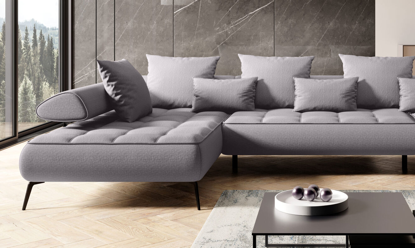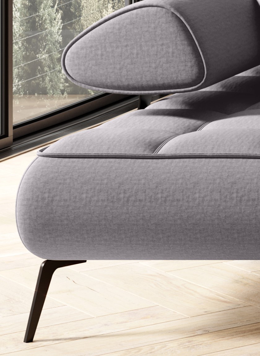 Ein modernes Ecksofa auf hohen, eleganten Beinen. Die elektrische Sitztiefenverstellung ermöglicht es, die Art der Erholung an die individuellen Bedürfnisse der Nutzer anzupassen und garantiert so Erholung auf höchstem Niveau. Das Modell fügt sich perfekt in modernistische Interieurs ein. Die charakteristischen Rückenlehnen und eine Reihe von Kissen machen SELEDO zum dominierenden Element eines jeden Wohnzimmers, das als freistehendes Ecksofa auch in der Mitte eine gute Figur macht.