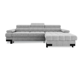 Mit seinem Design wird Selva auch die anspruchsvollsten Liebhaber der häuslichen Entspannung begeistern. Geräumige Sitze, moderne Dekorationselemente, gut profilierte Rückenlehnen und bewegliche Kopfstützen sorgen für höchste Qualität der Erholung. Die Schlaffunktion ermöglicht es Ihnen dank einer praktischen automatischen Aufklappeinheit vom Typ „Delphin“, das Möbelstück effizient in einen bequemen Platz zu verwandeln, um unerwartete Gäste schlafen zu legen. In der Aufbewahrungsbox, die in der Ottomane dieses Möbelstücks versteckt ist, können Sie zusätzliche Bettwäsche oder eine warme Decke aufbewahren.