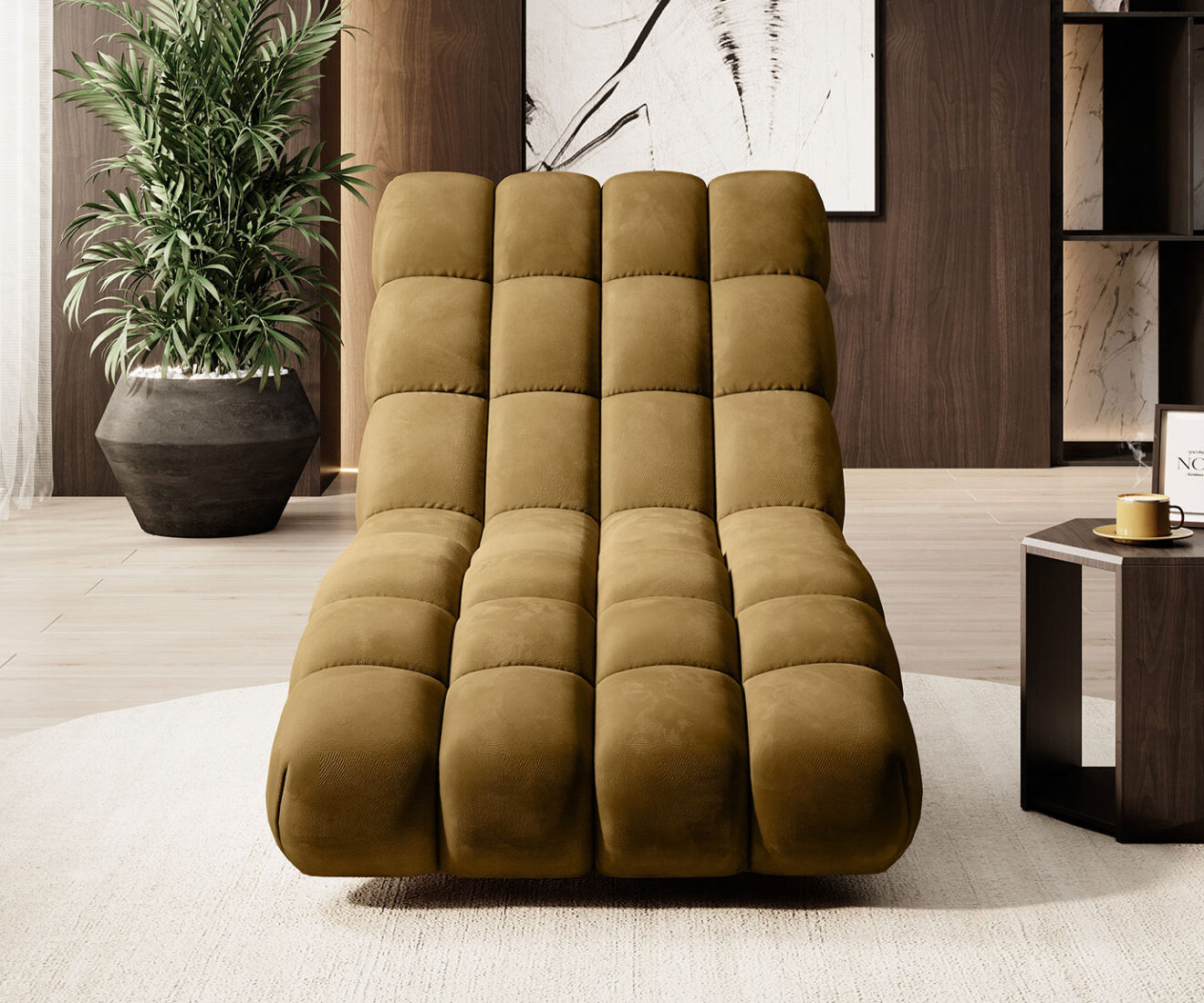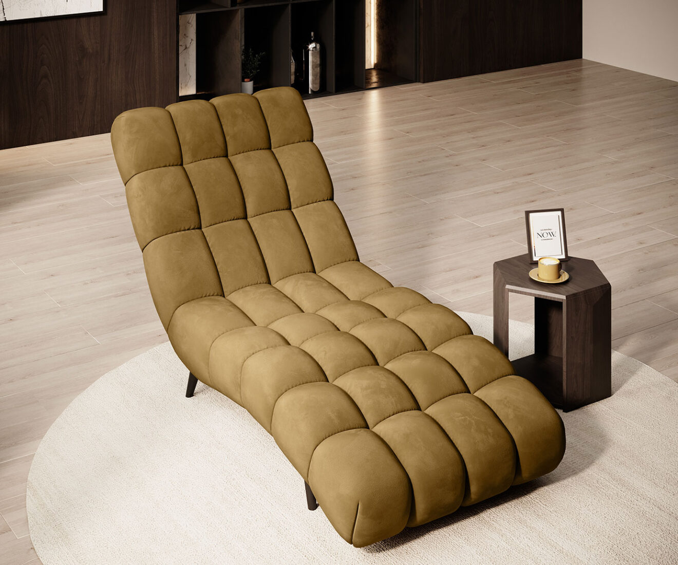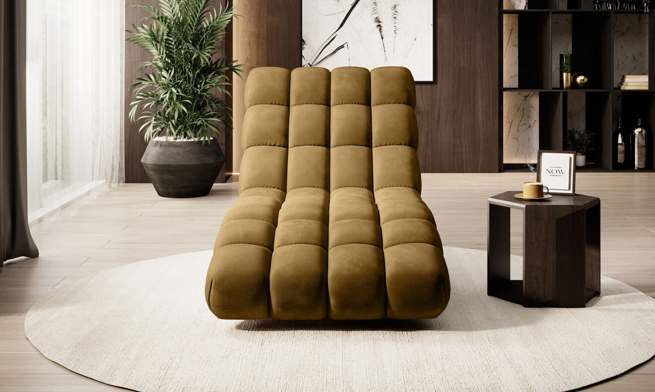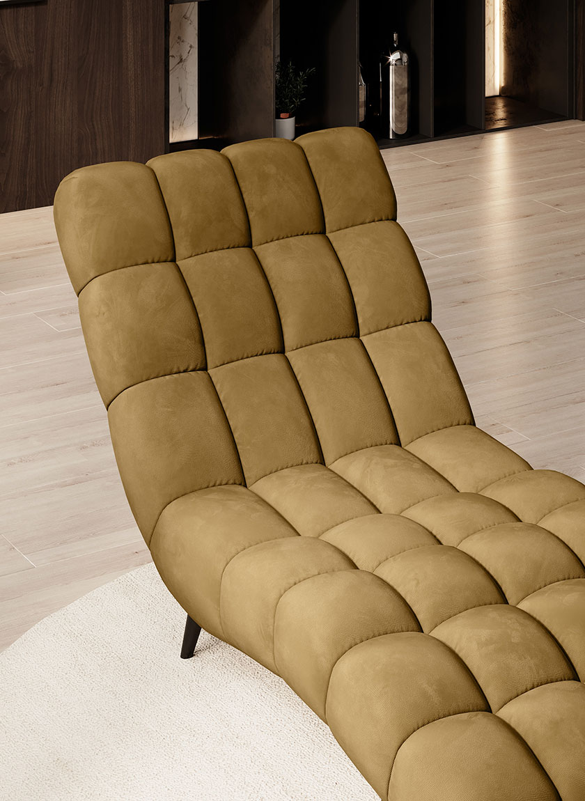 DELPHI 80 – Entspannung in ihrer reinsten Form. Zahlreiche tiefe Nähte und eine ergonomische Form machen das Liegen auf dieser Chaiselongue zu einem sehr angenehmen Erlebnis. Das Modell ist in zwei Breiten erhältlich.