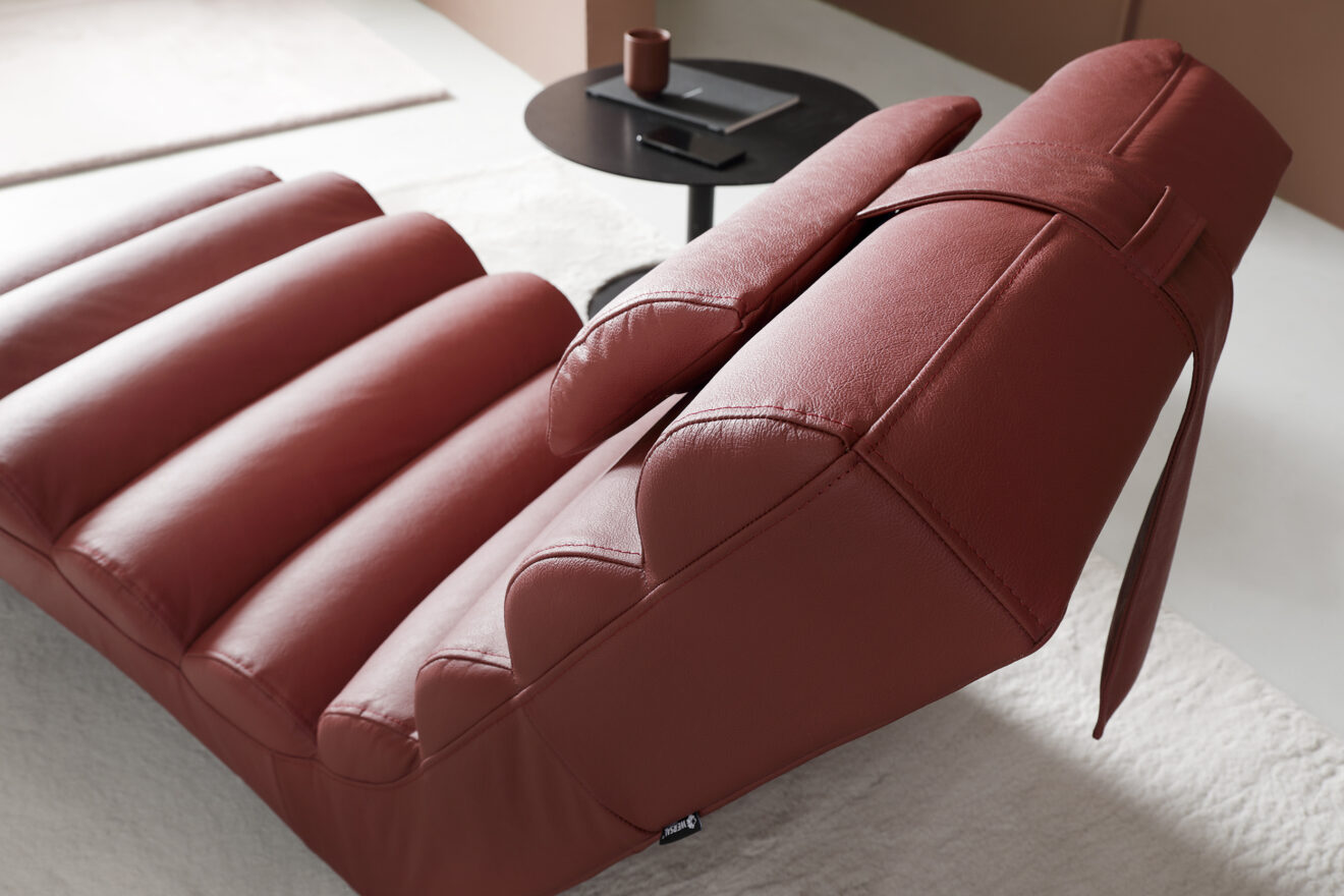 Eine ungewöhnliche Form und unbeschreiblicher Komfort. Das ist die Chaiselongue MIAMI. Zahlreiche Nähte sorgen dafür, dass dieses Möbelstück einen außergewöhnlichen Komfort beim Ausruhen bietet. Ein zusätzliches Kissen in der Rückenlehne erhöht die Qualität der Nutzung.