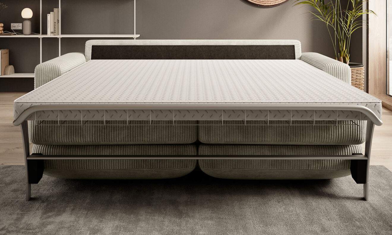 VANILLA – ein Sofa mit klassischem Design, das jeden anspricht. Schlichte Seiten und weiche Kissen ziehen die Aufmerksamkeit auf VANILLA, auch wenn das Modell in seiner Form recht minimalistisch ist. Das Sofa ist mit einem italienischen Klappsystem ausgestattet. Die darin verborgene Matratze lässt das Sofa wie ein normales Bett wirken. Es gibt drei verschiedene Breiten zur Auswahl. Dadurch eignet sich das Modell sowohl für größere als auch für kleinere Räume.