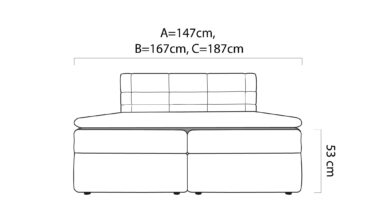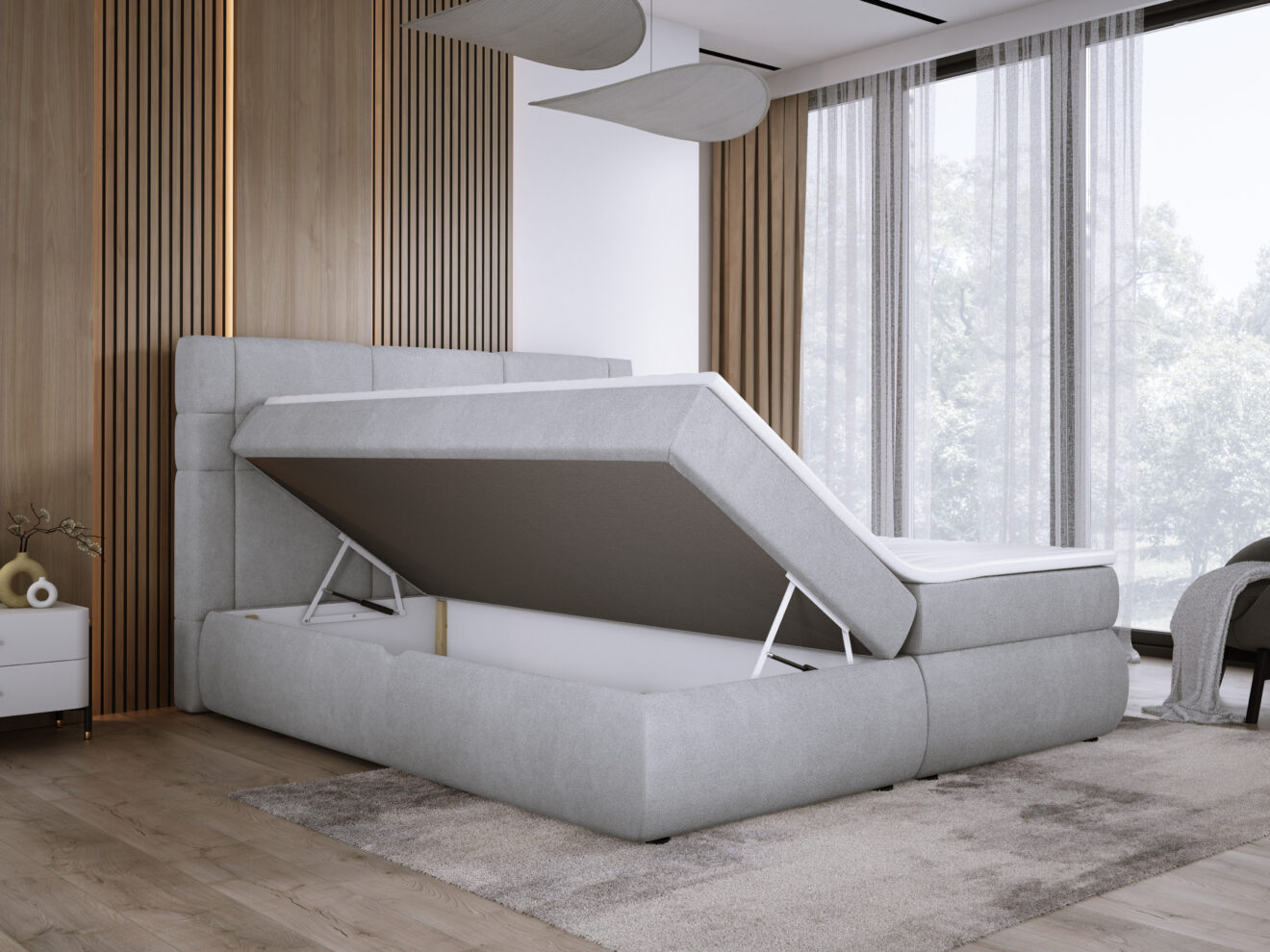 Continental boxspring bed that combines comfort and functionality. The simple stitching on the headboard gives it an elegant, modern look, while two large storage compartments provide extra space for bedding. Largo is the perfect choice for those who value sleep comfort and practical bedroom solutions.