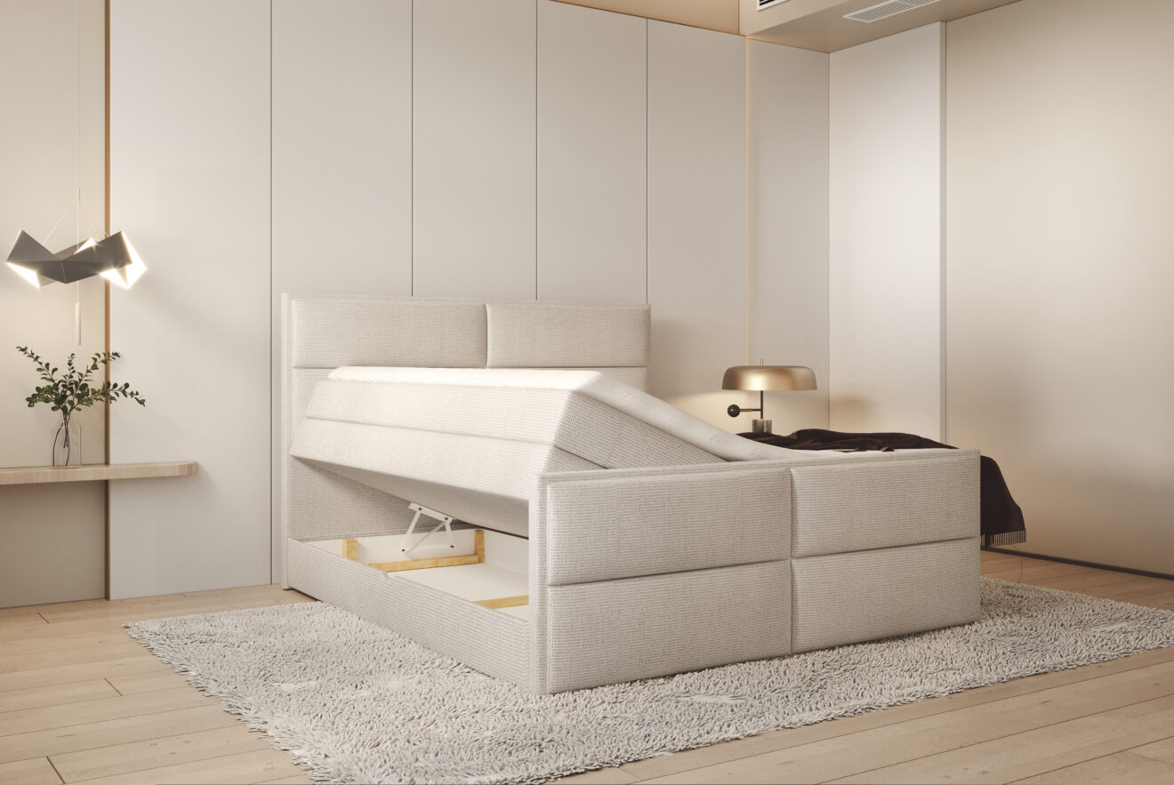 WILSON features a headboard divided into four sections for a stylish, modern look. The combination of a 7-zone mattress and a bonell spring mattress provides superior comfort and perfect body support.