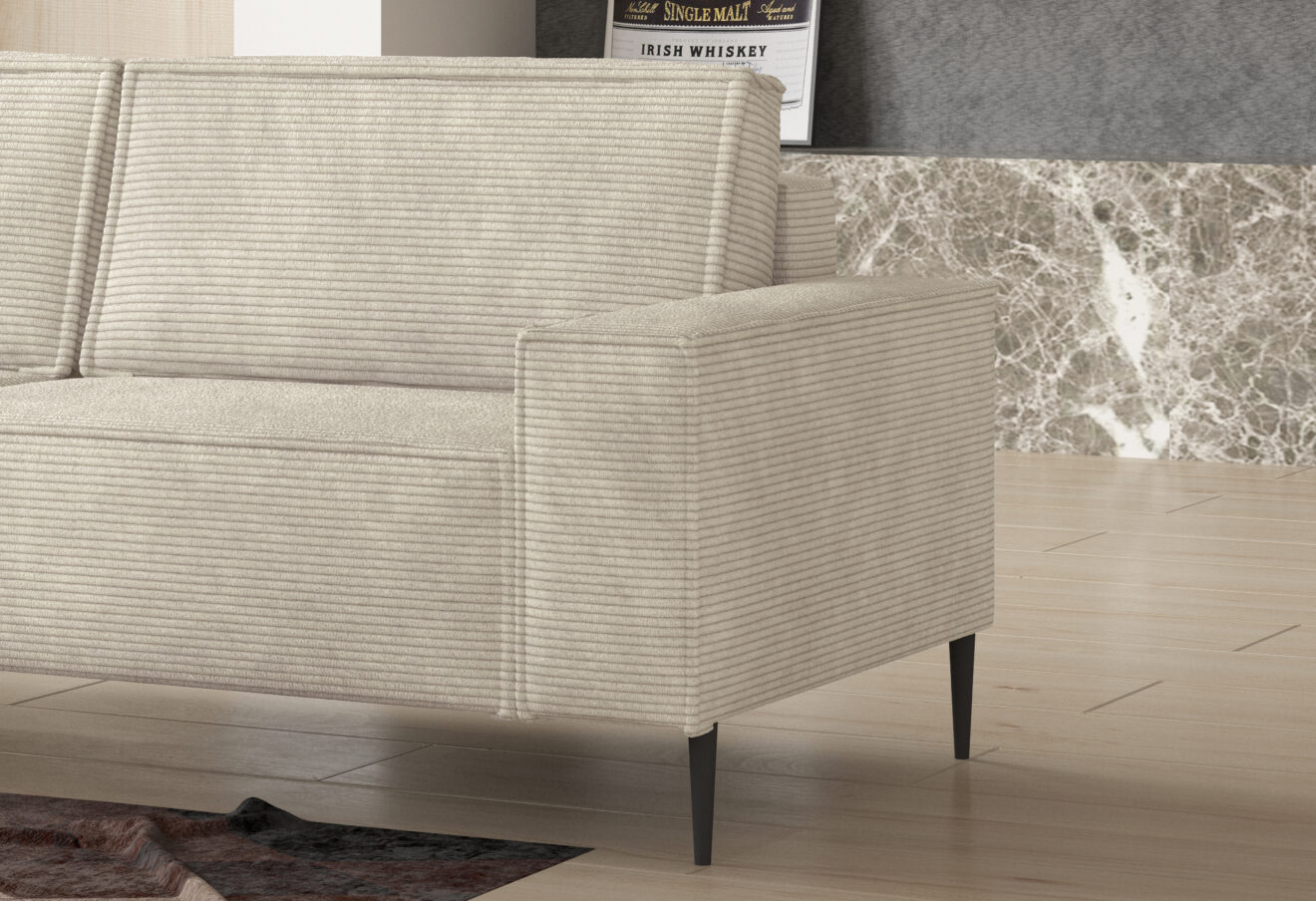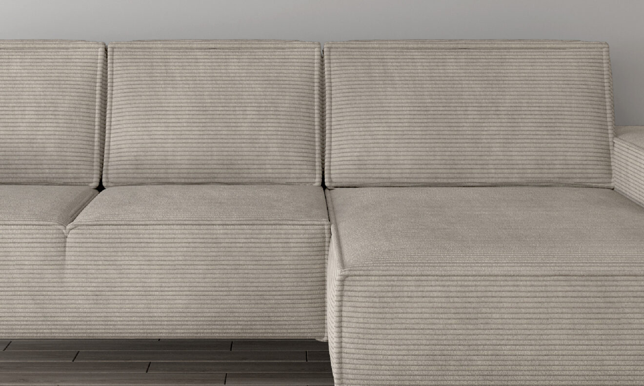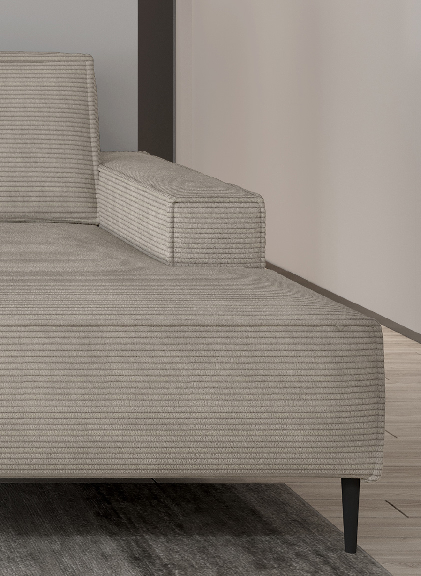 Matano corner sofa is dedicated to all those who value modern design and comfort. The sleeping function is a solution for everyone who is looking for an additional place to rest. The hidden storage compartment can hold extra bedding and a warm blanket. The corner sofa, thanks to its simple line, will fit into any interior. Seated on high legs, it looks extremely light and at the same time very impressive.