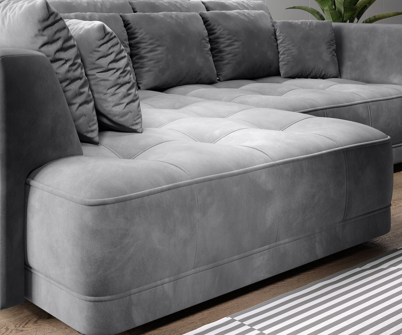 An extremely modern and comfortable corner sofa, with an electrical seat extension system that allows you to adjust the resting position according to your individual needs. The stitching and delicate beading on the seat are an interesting decorative element that emphasises the character of the furniture. An additional advantage is the possibility of choosing between two types of texture as well as choosing the colour of fabrics from a rich palette of patterns, thanks to which the sofa acquires an original style, adjusted to individual tastes.