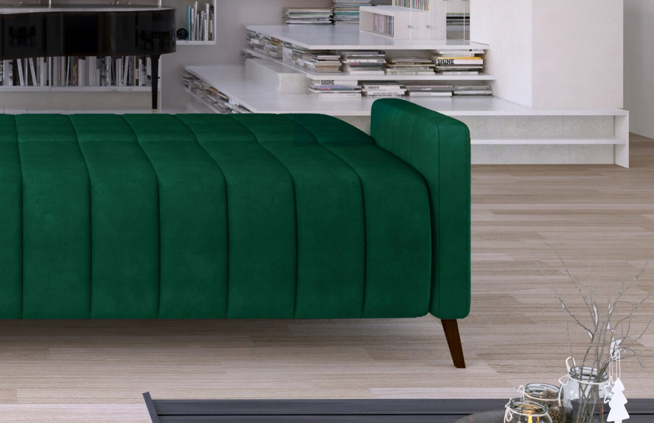 Molly a été conçu pour les petites chambres de jeunes, où un espace de couchage confortable est nécessaire en plus d’un endroit pour se détendre. Le canapé moderne aux finitions originales, reposant sur de hauts pieds, sera une décoration pour tout intérieur. La possibilité de choisir la texture et la couleur du tissu dans la riche palette du catalogue de motifs vous permet d’adapter son style à vos goûts personnels.