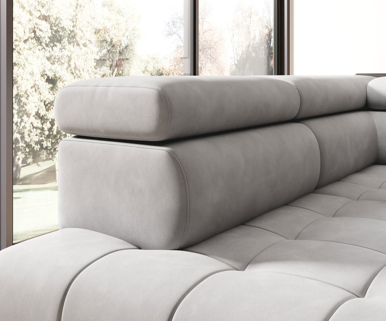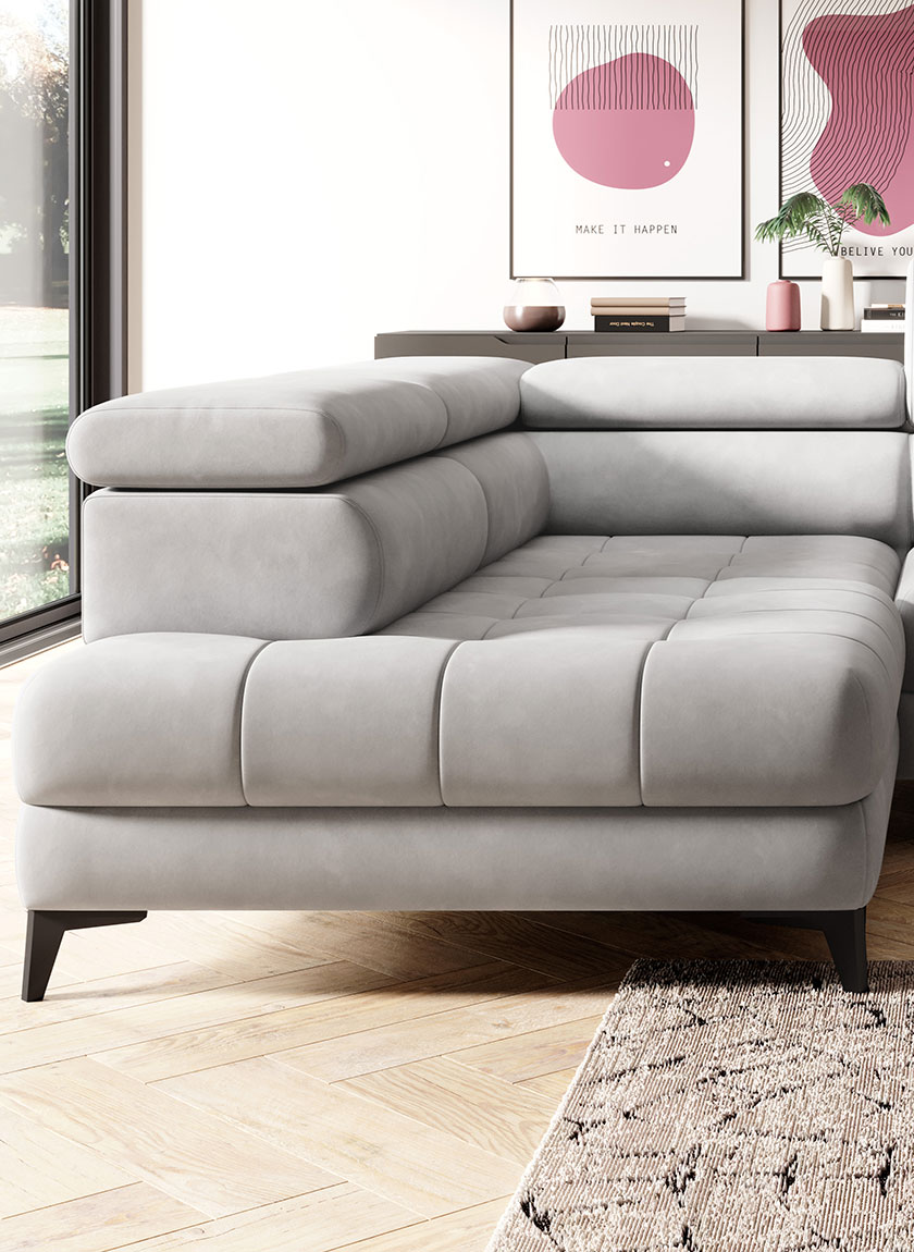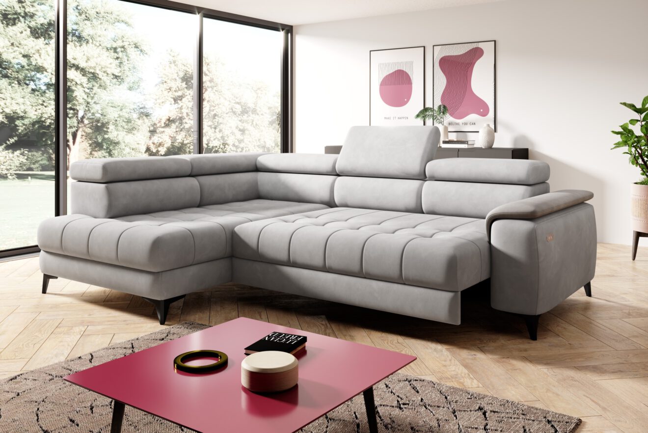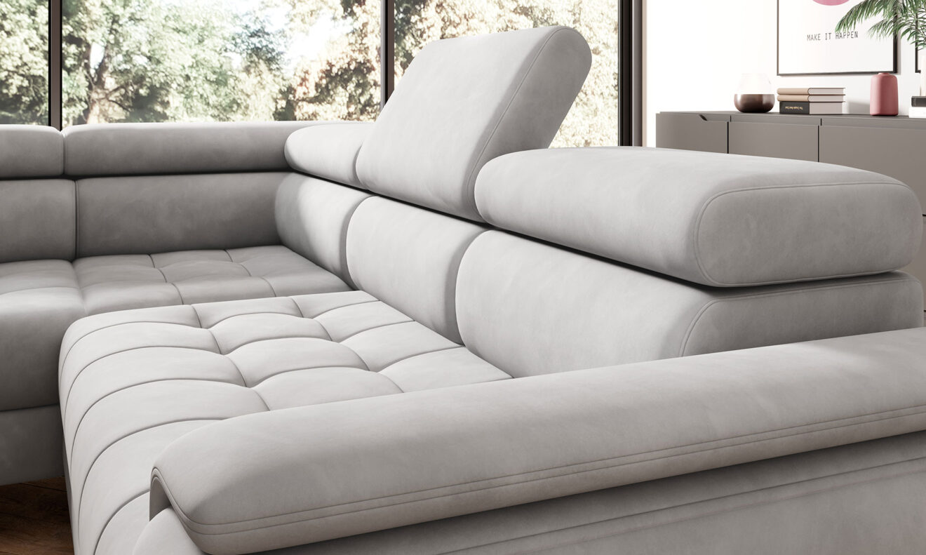 Il plaira à tous ceux qui apprécient la fonctionnalité et le design. Les appuis-tête réglables et l’assise extensible électriquement font de ce canapé d’angle un véritable plaisir.