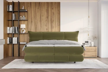 AURIS to łóżko zaprojektowane z myślą o codziennym komforcie i nowoczesnym stylu życia. Elektryczna regulacja górnej części materaca pozwala precyzyjnie dopasować pozycję – idealną do relaksu, czytania czy oglądania. Komfortowy materac wspiera ciało, zapewniając wygodny wypoczynek. Miękkie, poduszkowe zagłowie podkreśla przytulny charakter całości.
