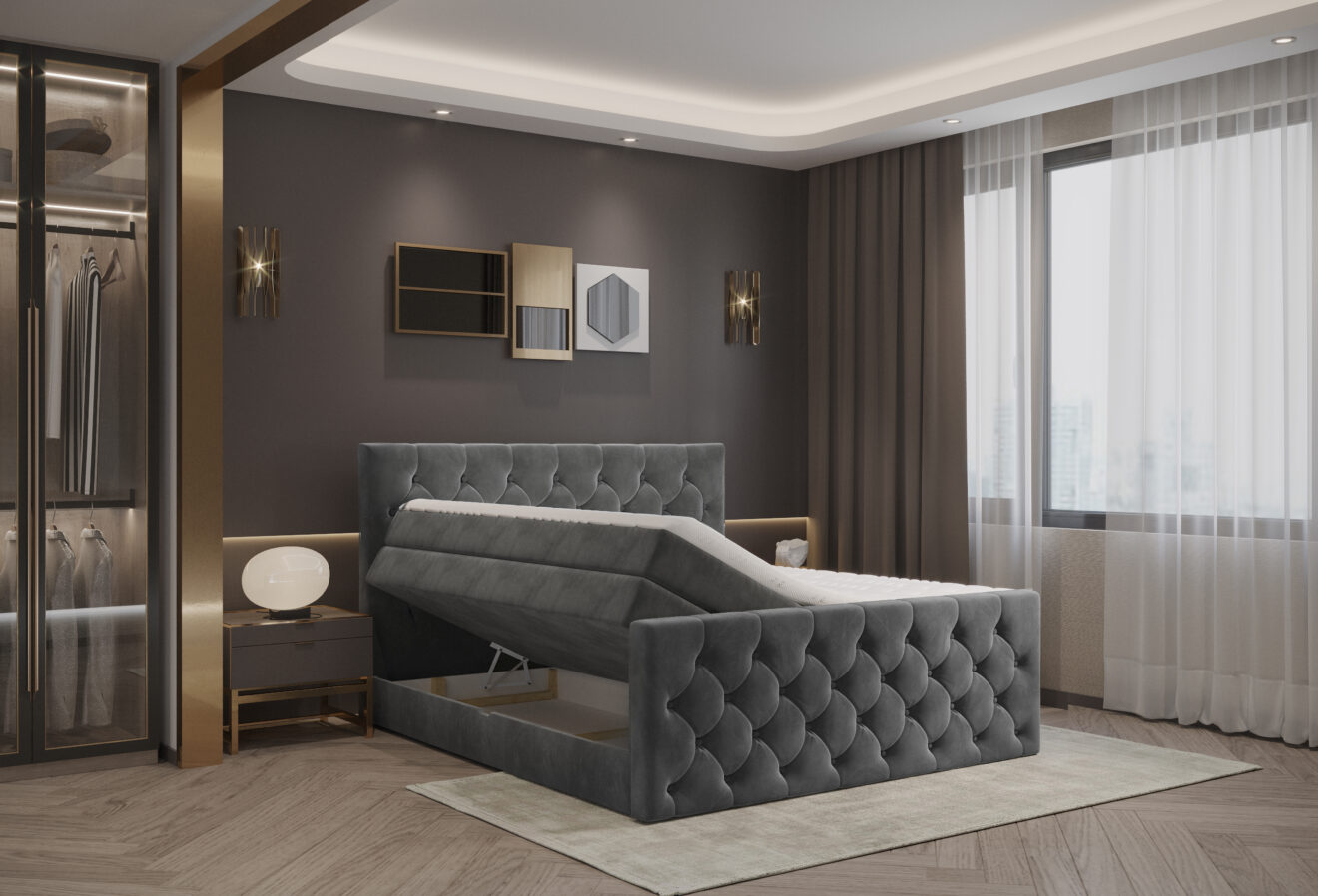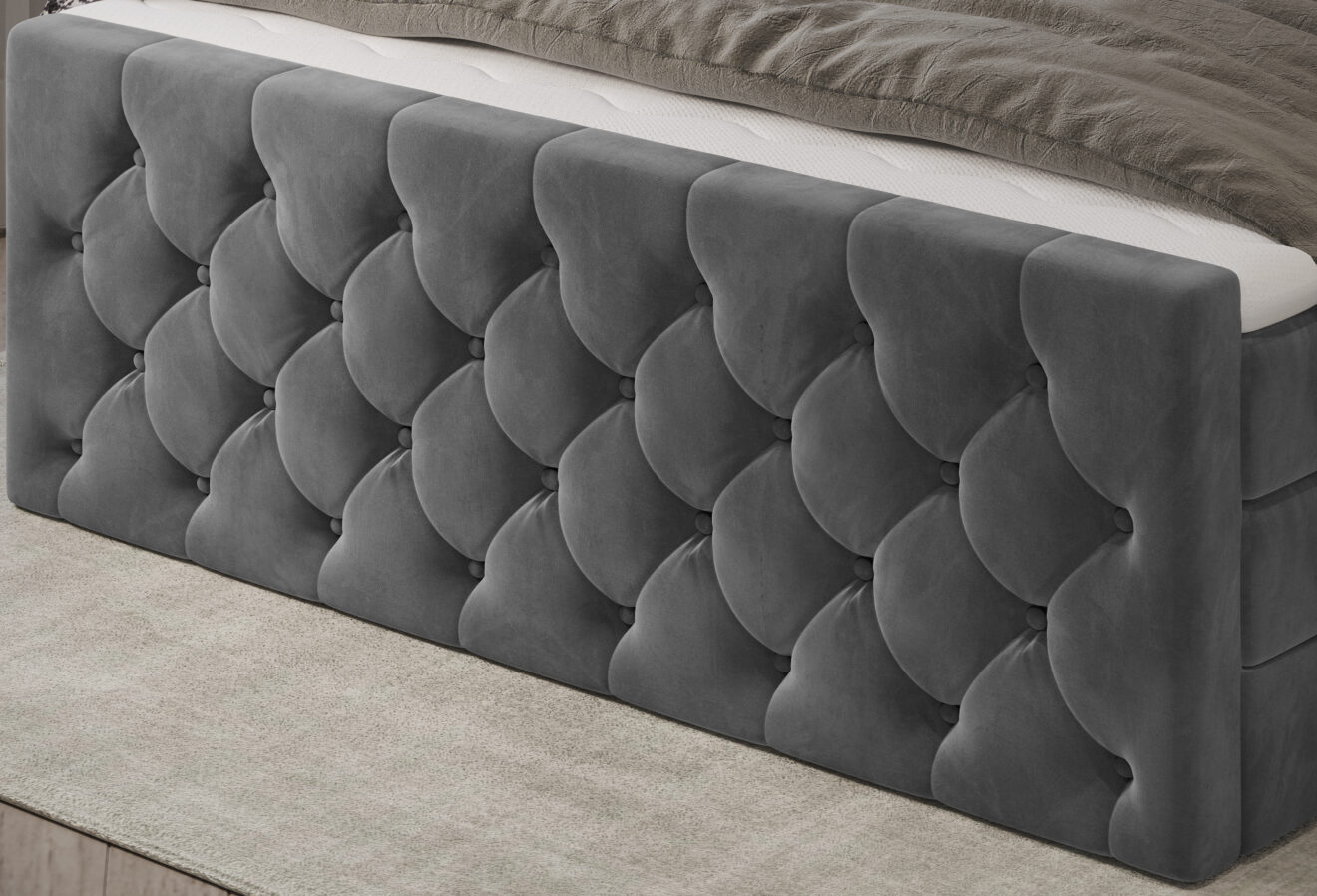 Łóżko Elio to połączenie klasycznej formy i elegancji. Pikowane wezgłowie i przód nadają mu szyku rodem z paryskich wnętrz. Solidna konstrukcja i dopracowane detale sprawiają, że będzie ozdobą każdej sypialni. Idealne dla osób, które cenią styl, komfort i ponadczasowy design.