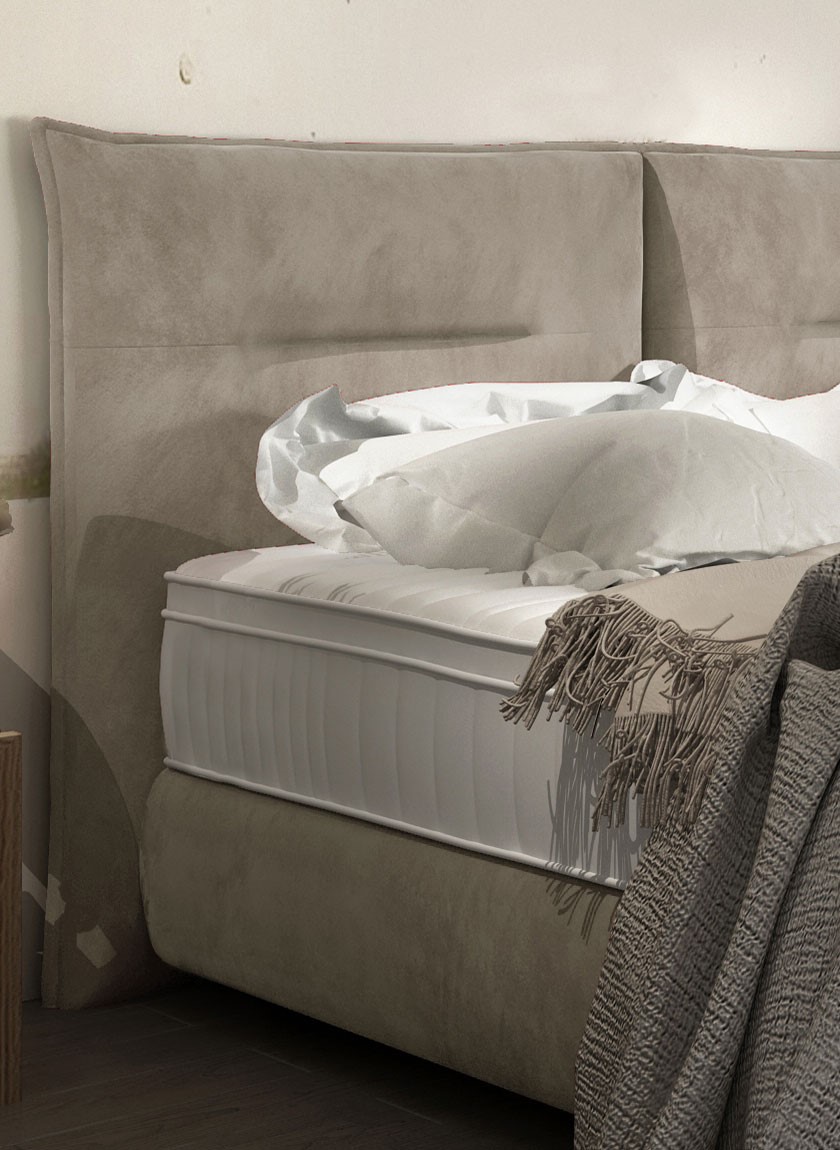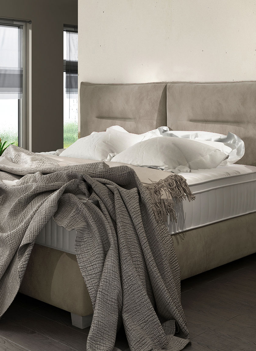 Łóżko to przyciąga uwagę swoim ciekawym zagłowiem z poziomymi przeszyciami po obu stronach. Odnajdzie się zarówno w klasycznych, jak i nowoczesnych wnętrzach. FOG występuje również w skórzanej wersji, co dodatkowo podwyższa jakość tego mebla. Do wyboru są trzy powierzchnie spania, tak aby każdy użytkownik znalazł odpowiedni wymiar do swojej sypialni