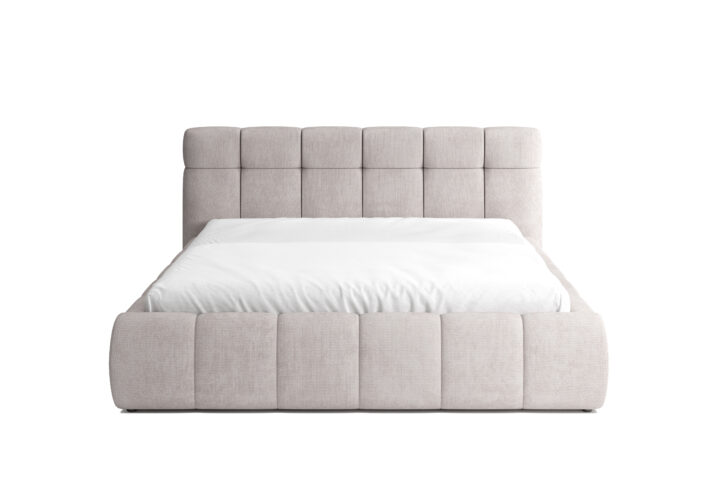 Łóżko MELISSA wyposażone jest w praktyczny pojemnik na pościel, oferując wygodne miejsce do przechowywania. Jego unikalna forma przyciąga wzrok i sprawia, że staje się centralnym elementem aranżacji wnętrza, podkreślając jego styl i klasę.
