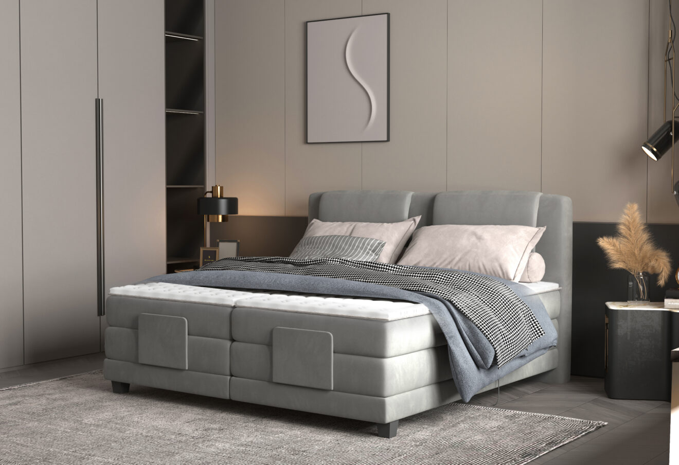 Model ten zadowoli nawet najbardziej wymagających użytkowników, dzięki zmotoryzowanej regulacji powierzchni spania. Dzięki temu każdy użytkownik może dostosować kąt nachylenia materaca do swoich indywidualnych potrzeb. Elegancki zagłówek gwarantuje stabilne podparcie podczas czytania książki lub oglądania telewizji.