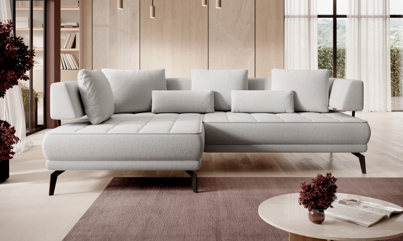Nowoczesny narożnik, który został posadowiony na wysokich, eleganckich nóżkach. Elektryczna regulacja głębokości siedziska pozwala dopasować rodzaj wypoczynku do indywidualnych potrzeb użytkowników, gwarantując wypoczynek na najwyższym poziomie. Model idealnie wpasuje się w modernistyczne wnętrza. Charakterystyczne oparcia oraz komplet poduszek sprawiają, że Giotto staje się dominującym elementem każdego salonu i będzie świetnie się prezentował w jego centralnej części, gdyż jest to narożnik wolnostojący.