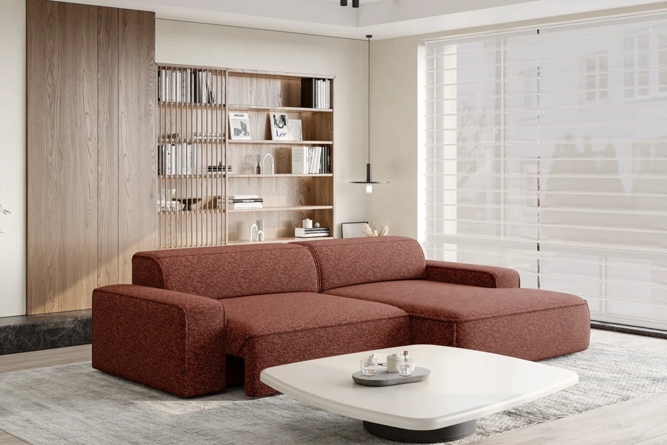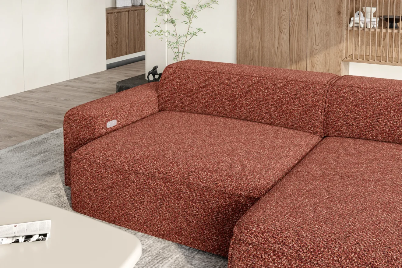 NUBE S to nowoczesny, minimalistyczny narożnik o prostej bryle. Elektrycznie wysuwane siedzisko zwiększa komfort użytkowania. Geometryczna forma nadaje mu elegancki, uporządkowany wygląd. Idealny do nowoczesnych wnętrz.