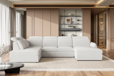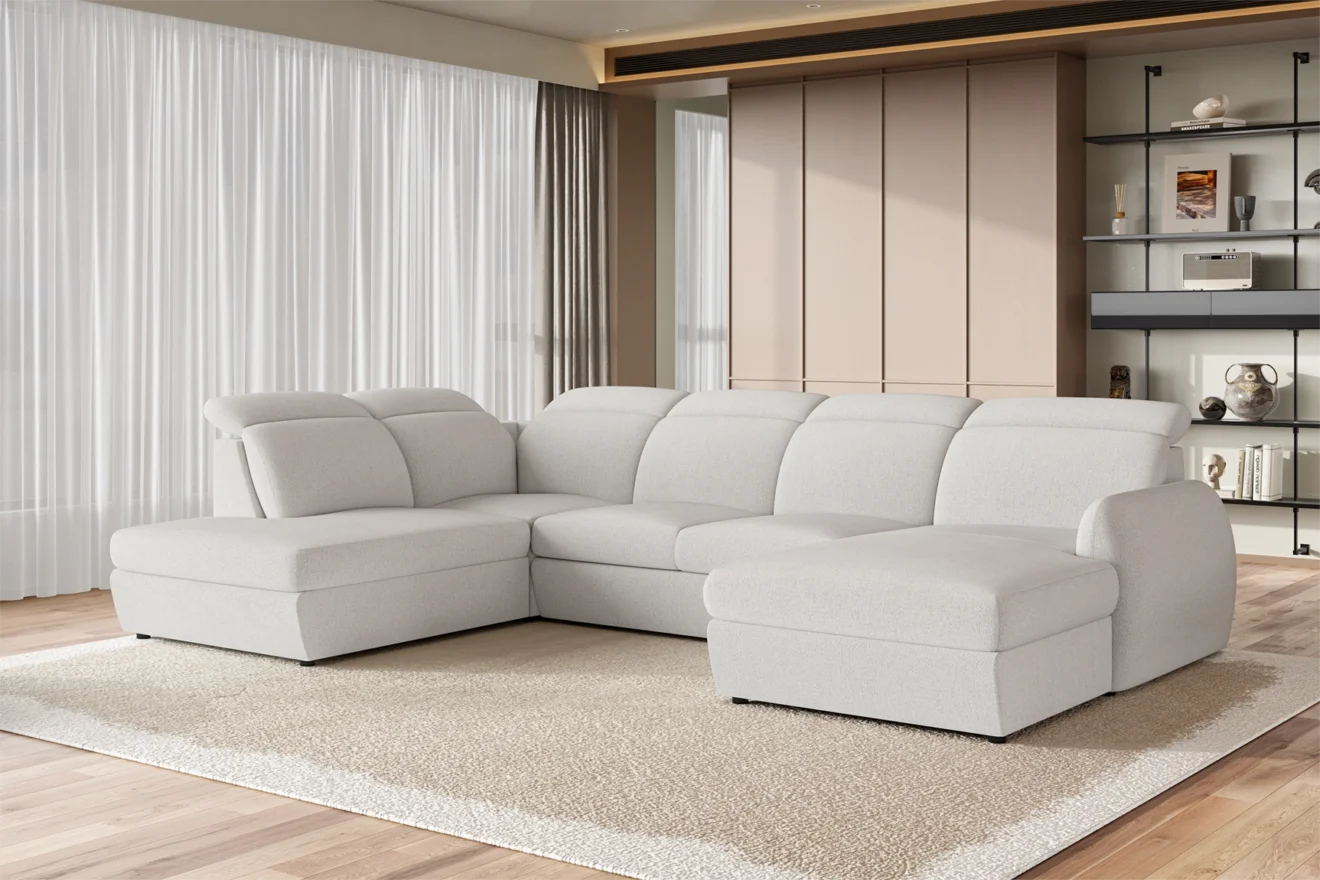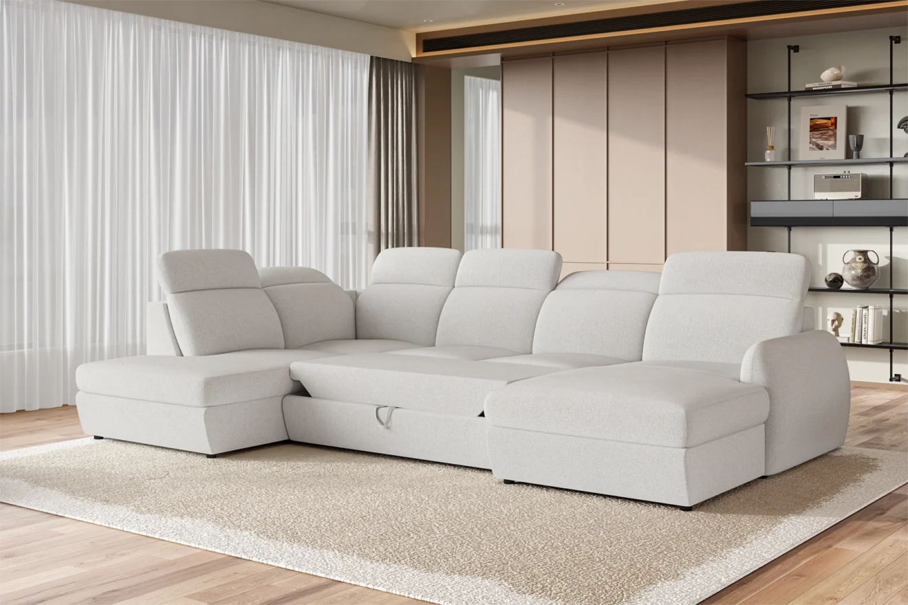 SANCHO to narożnik, który łączy funkcję spania z codziennym komfortem. Regulowane zagłówki oraz pojemnik na pościel zwiększają jego praktyczność. Prosta forma sprawia, że łatwo dopasować go do różnych aranżacji. Dostępność kilku rozmiarów daje większą swobodę wyboru.