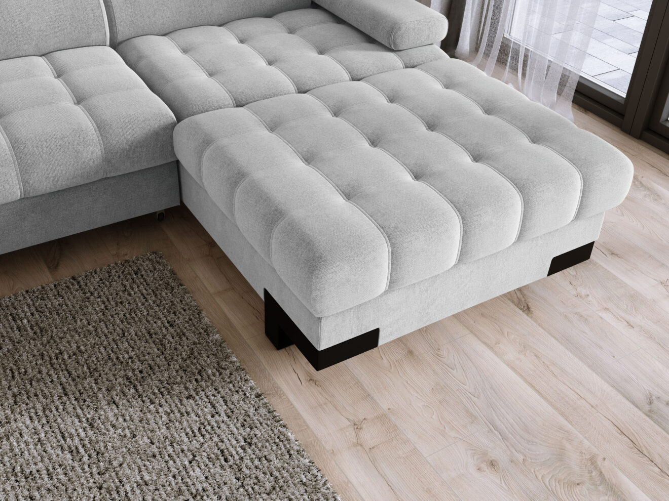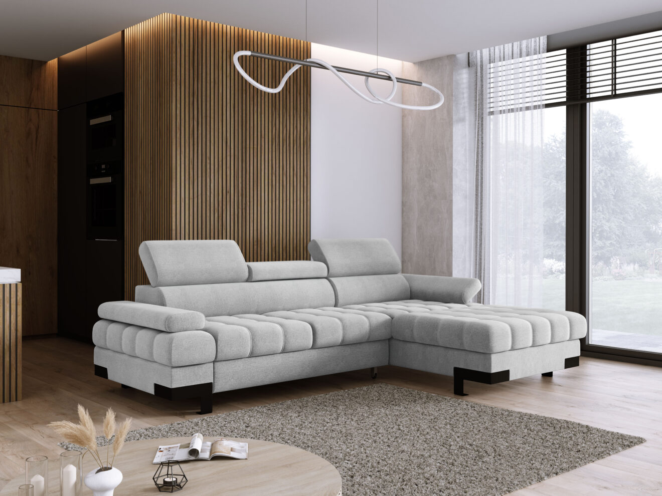 Swoją stylistyką Selva zachwyci najbardziej wymagających zwolenników domowego relaksu. Przestronne siedziska, nowoczesne elementy dekoracyjne, odpowiednio wyprofilowane oparcia oraz ruchome zagłówki zapewnią najwyższą jakość wypoczynku. Funkcja spania, dzięki wygodnemu automatowi do rozkładania typu „delfin” pozwala na sprawną zmianę w wygodne miejsce do przenocowania niespodziewanych gości a w pojemniku, ukrytym w otomanie mebla można przechować dodatkowy komplet pościeli lub ciepły koc.