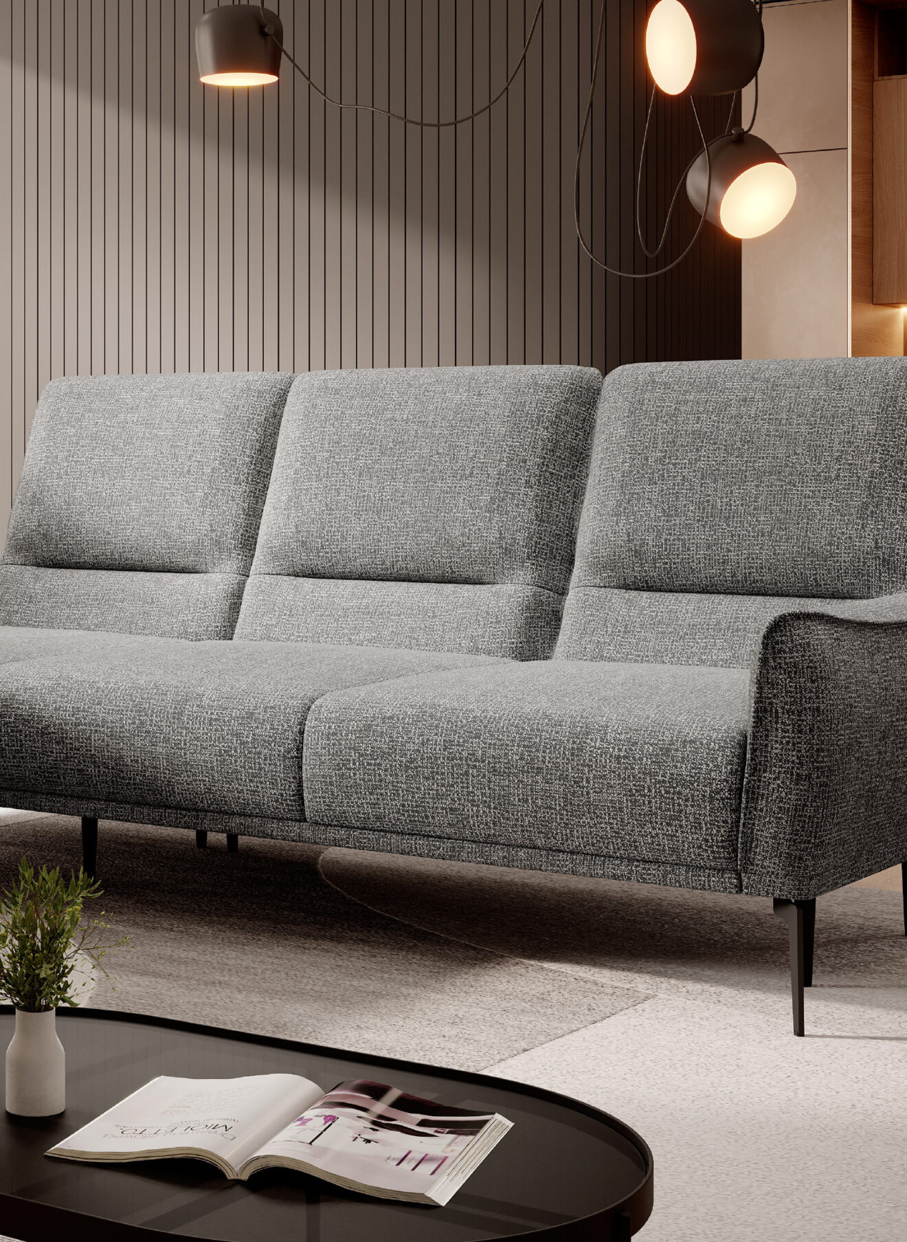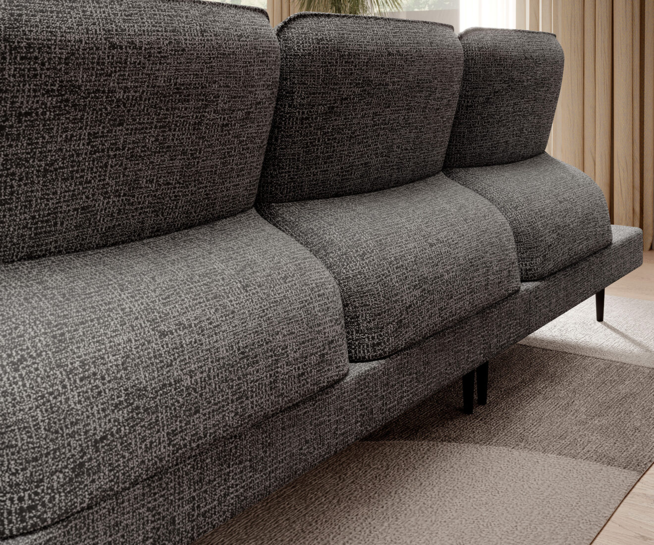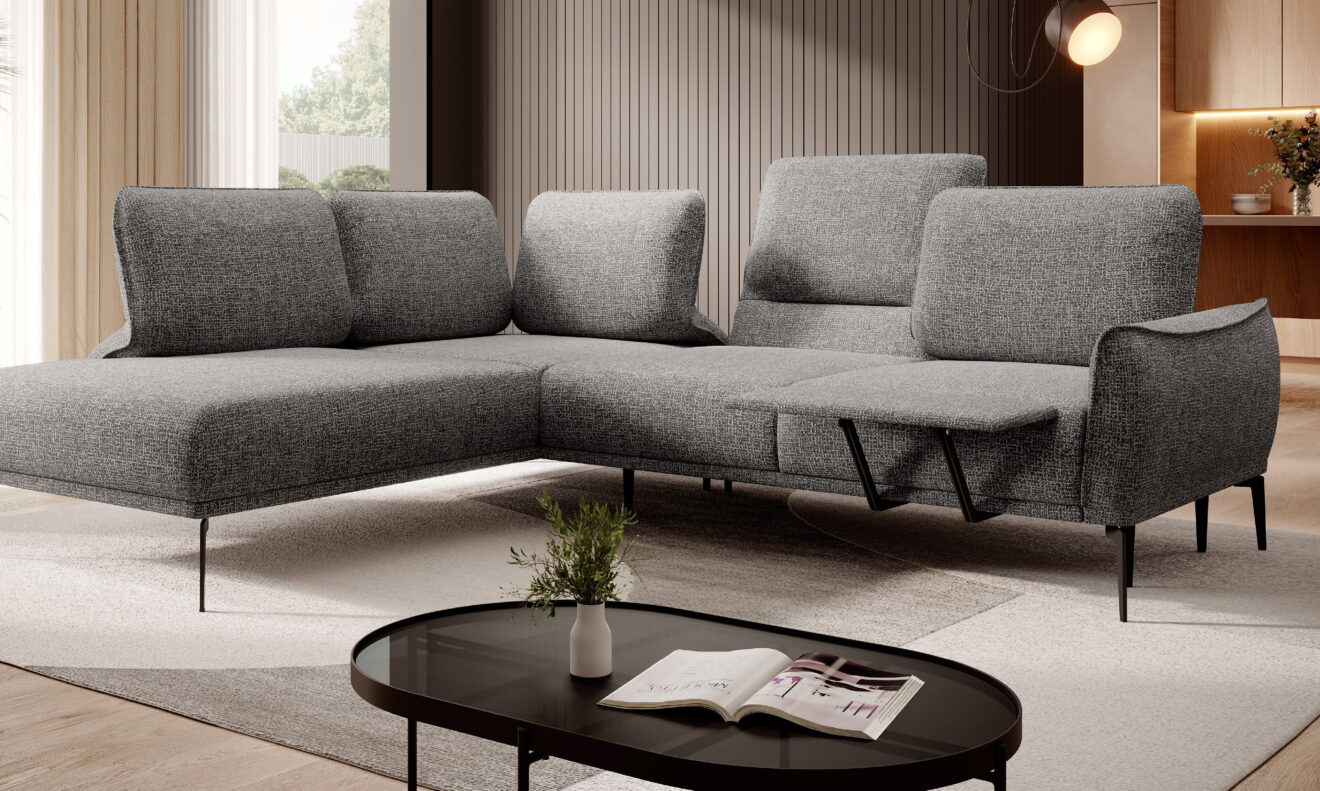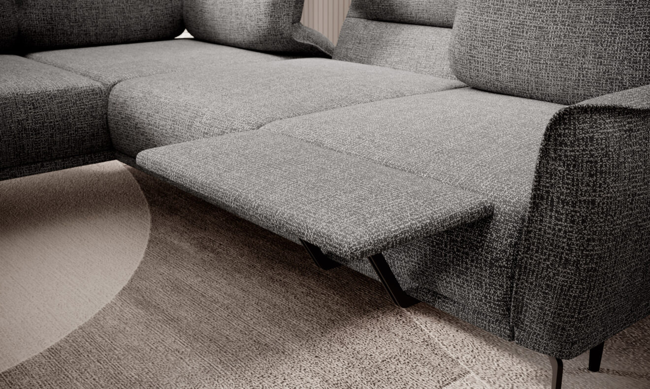Zgrabna i stylowa linia narożników STORM przypadnie do gustu każdemu, kto ceni sobie nowoczesne wzornictwo oraz funkcjonalne rozwiązania. Przesuwne oparcia, które w prosty sposób odchylają się do tyłu, umożliwiają przyjcie wygodnej półleżącej pozycji. Elektrycznie wysuwany podnóżek sprawia, że mebel użytkuje się z niezwykłą przyjemnością, a także umożliwia dopasować narożnik do indywidualnych potrzeb użytkownika. Dzięki takiemu rozwiązaniu mebel nie tylko wyróżnia się swoim wyglądem, ale przede wszystkim gwarantuje wypoczynek na najwyższym poziomie.