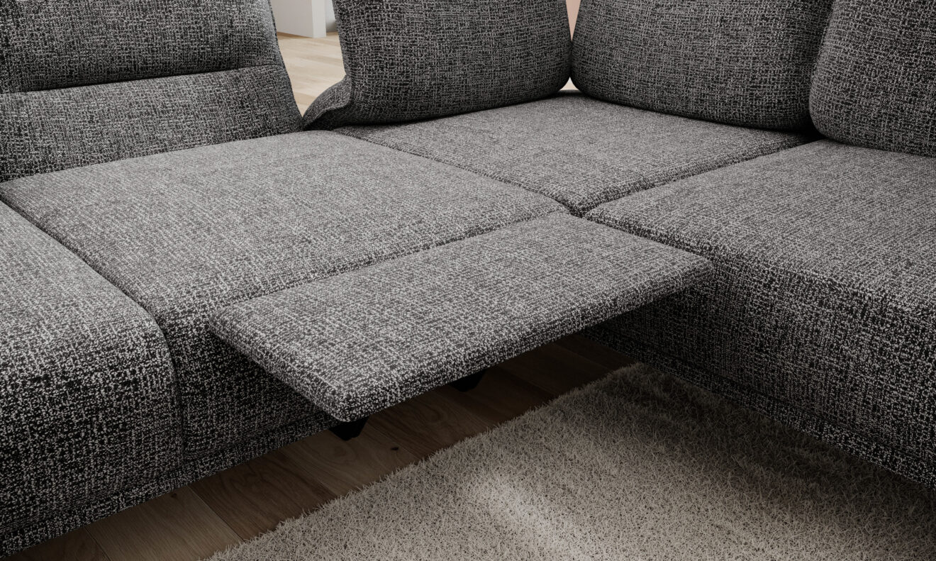 Zgrabna i stylowa linia narożników STORM przypadnie do gustu każdemu, kto ceni sobie nowoczesne wzornictwo oraz funkcjonalne rozwiązania. Przesuwne oparcia, które w prosty sposób odchylają się do tyłu, umożliwiają przyjcie wygodnej półleżącej pozycji. Elektrycznie wysuwany podnóżek sprawia, że mebel użytkuje się z niezwykłą przyjemnością, a także umożliwia dopasować narożnik do indywidualnych potrzeb użytkownika. Dzięki takiemu rozwiązaniu mebel nie tylko wyróżnia się swoim wyglądem, ale przede wszystkim gwarantuje wypoczynek na najwyższym poziomie.