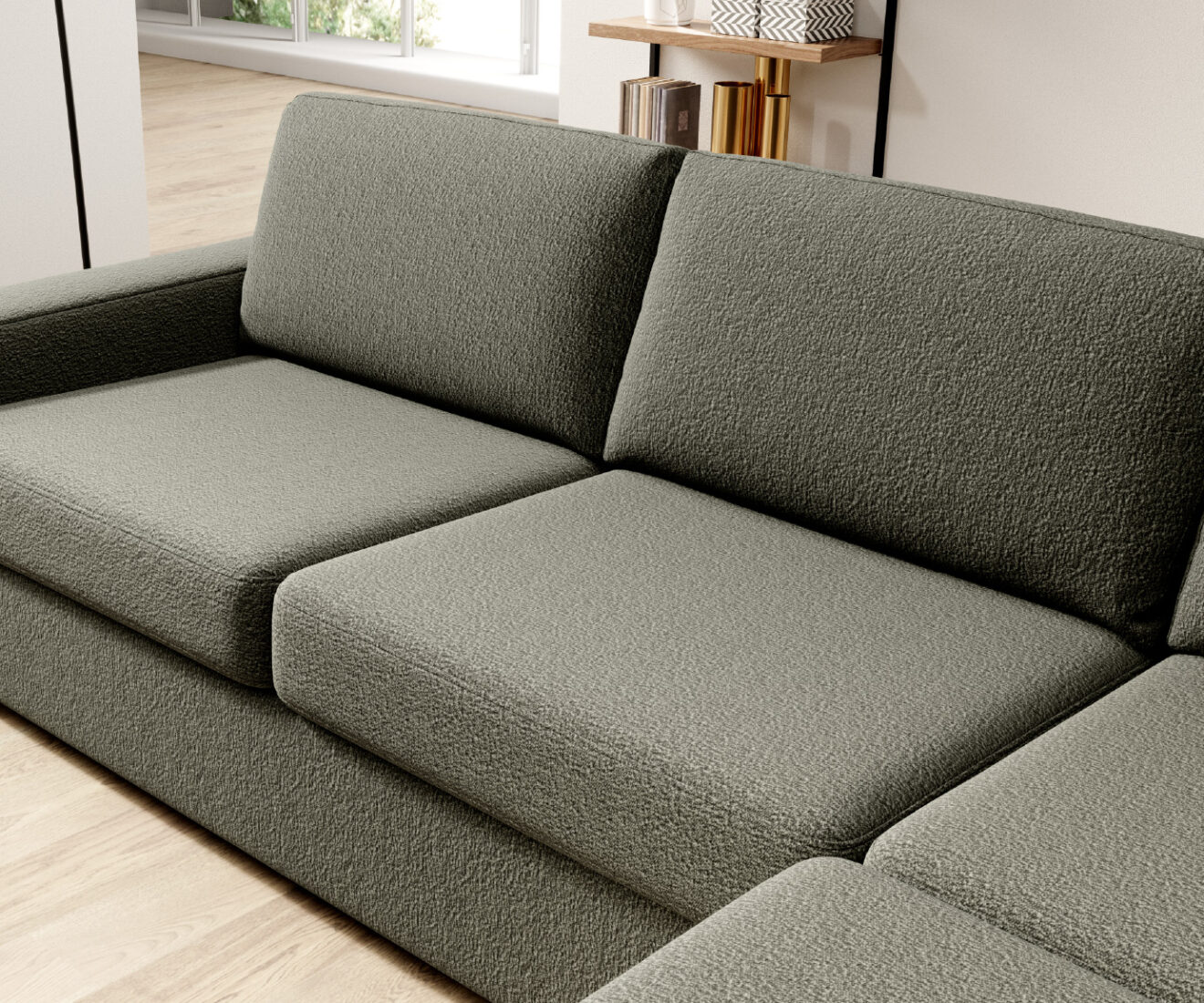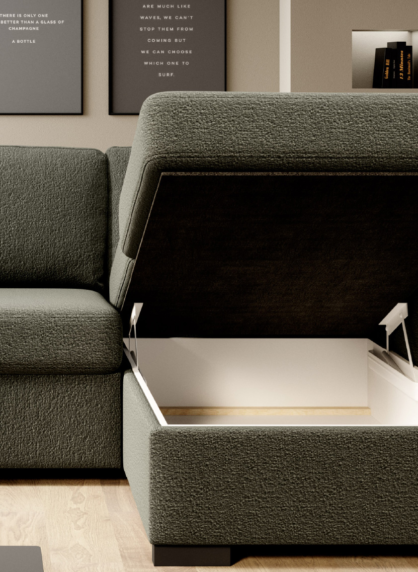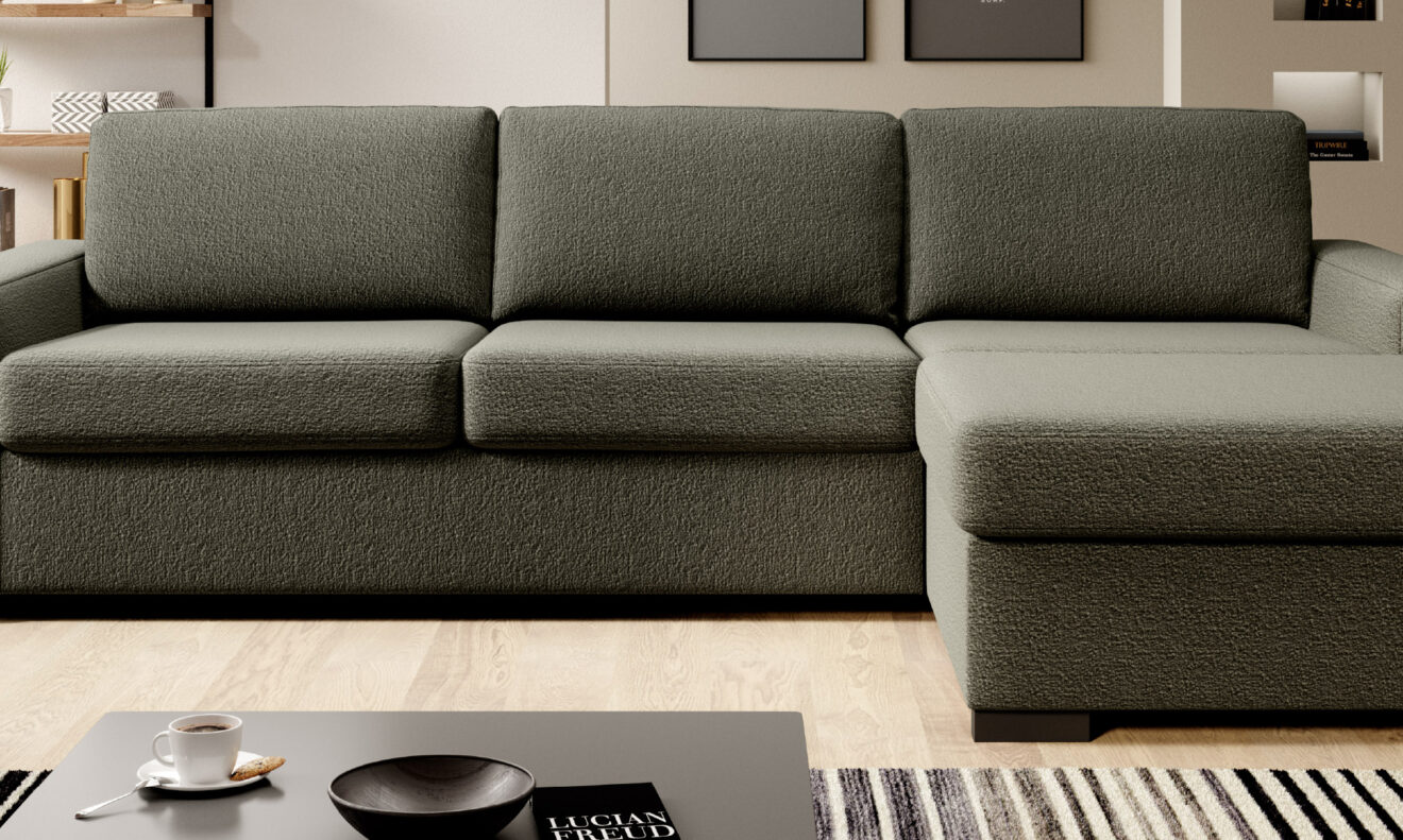 To narożnik o minimalistycznej formie, zaprojektowany w taki sposób, aby podkreślać charakter wnętrza. Dzięki włoskiemu systemowi rozkładania jednym ruchem zamienia się w łóżko wyposażone w materac wypełniony pianką wysokoelastyczną. Jego prosty, ale zarazem efektowny design doceni każdy użytkownik, któremu zależy na funkcjonalności i wygodzie.