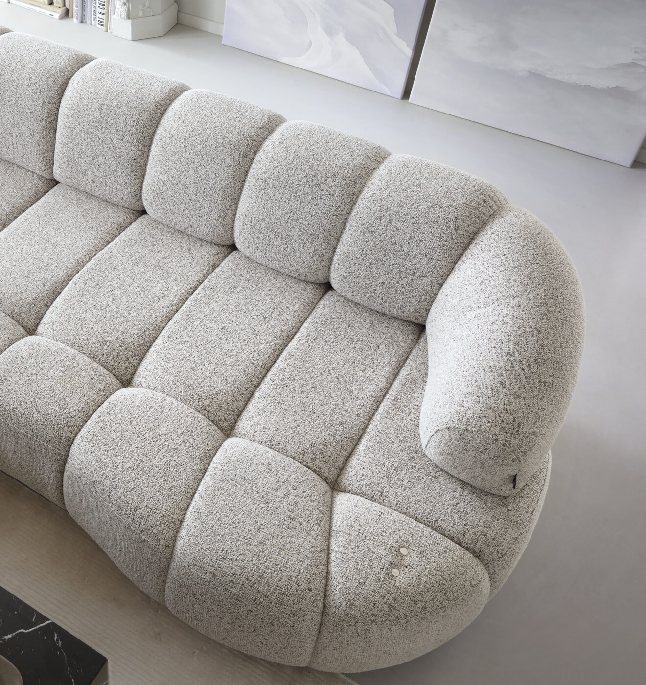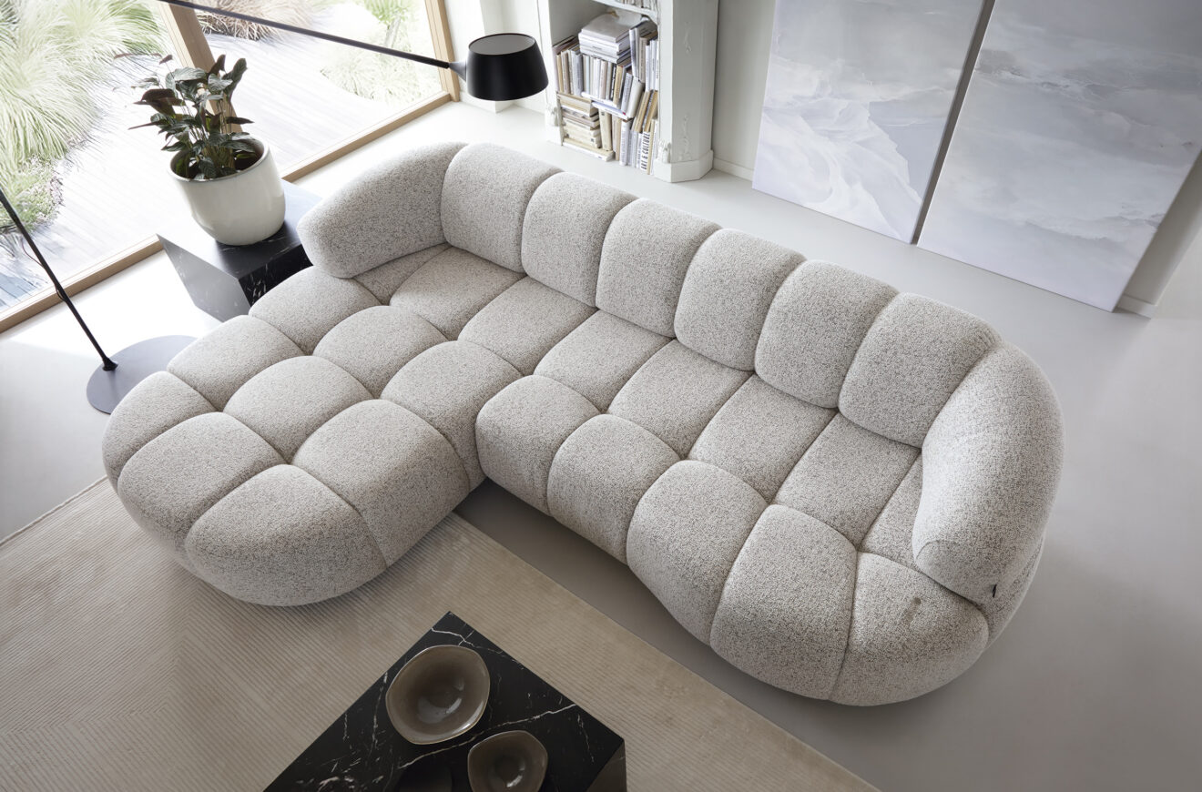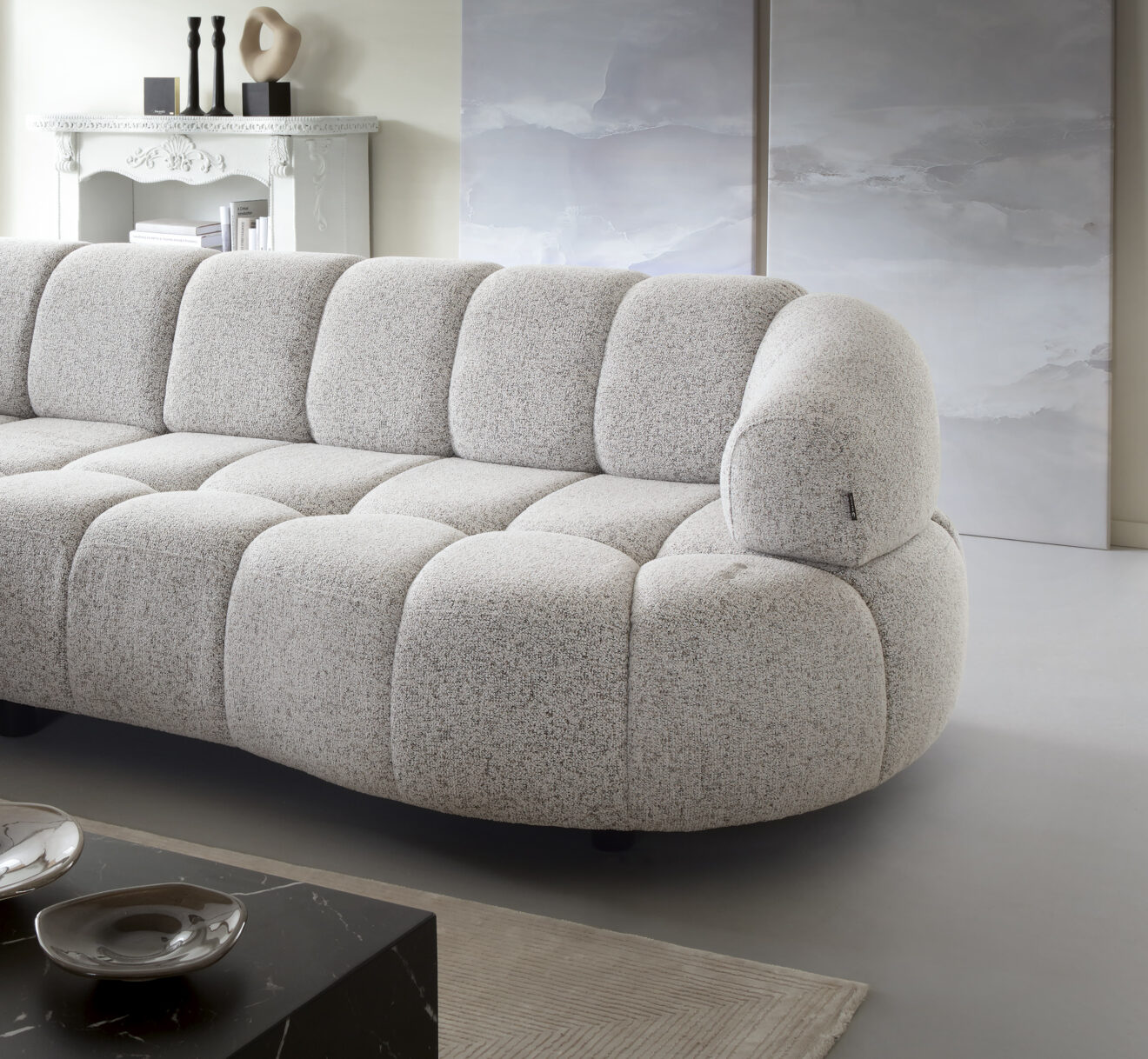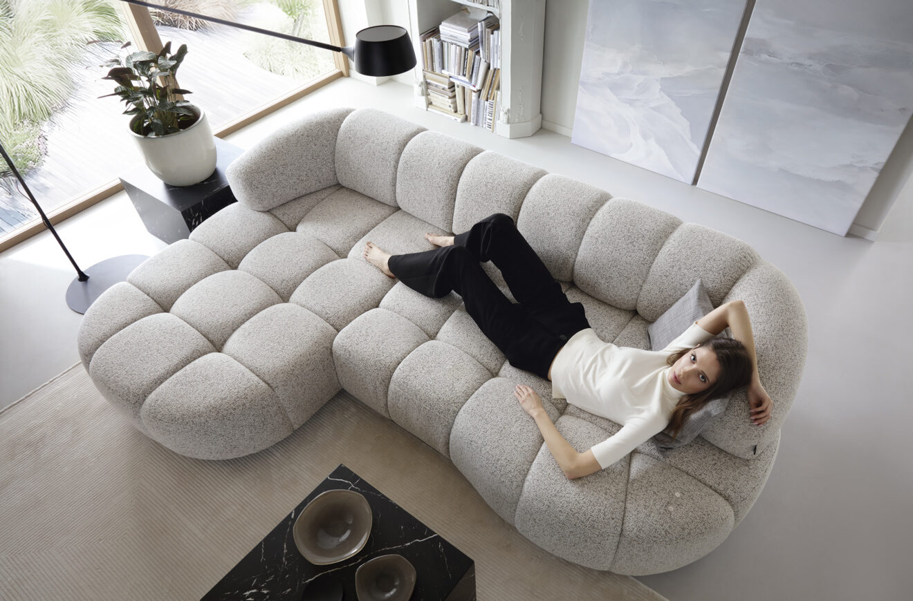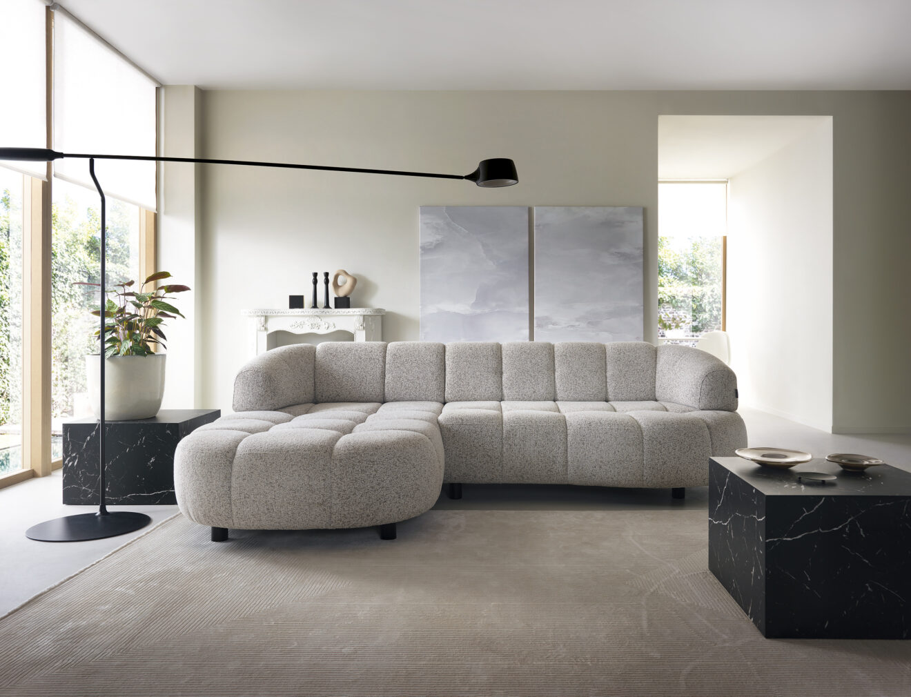 To narożnik wyróżniający się designerską formą i nietypowym kształtem. Zaokrąglona linia mebla dodaje mu nowoczesnego charakteru i elegancji, dzięki czemu doskonale sprawdzi się we wnętrzach modernistycznych. Przeszycia na siedziskach sprawiają, że jest niezwykle atrakcyjnym elementem aranżacji salonu. Dodatkowym atutem jest elektryczna regulacja głębokości siedziska, dzięki której można łatwo dostosować głębokość, zapewniając komfort użytkowania.