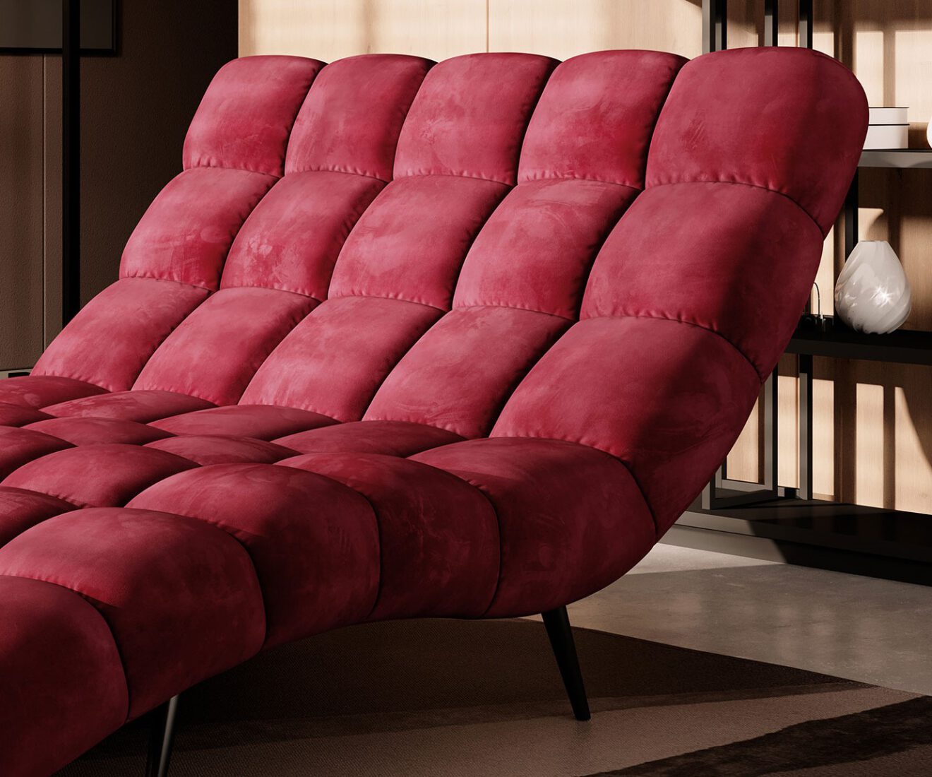 DELPHI – To relaks w czystej postaci. Liczne, głębokie przeszycia oraz ergonomiczny kształt sprawiają, że wypoczynek na tym szezlongu należy do bardzo przyjemnych. Model jest dostępny w dwóch szerokościach.